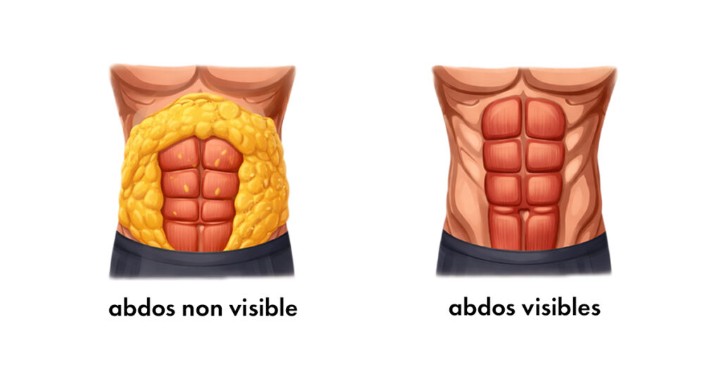 La visibilité des abdos dépend donc en grande partie du taux de masse grasse global.